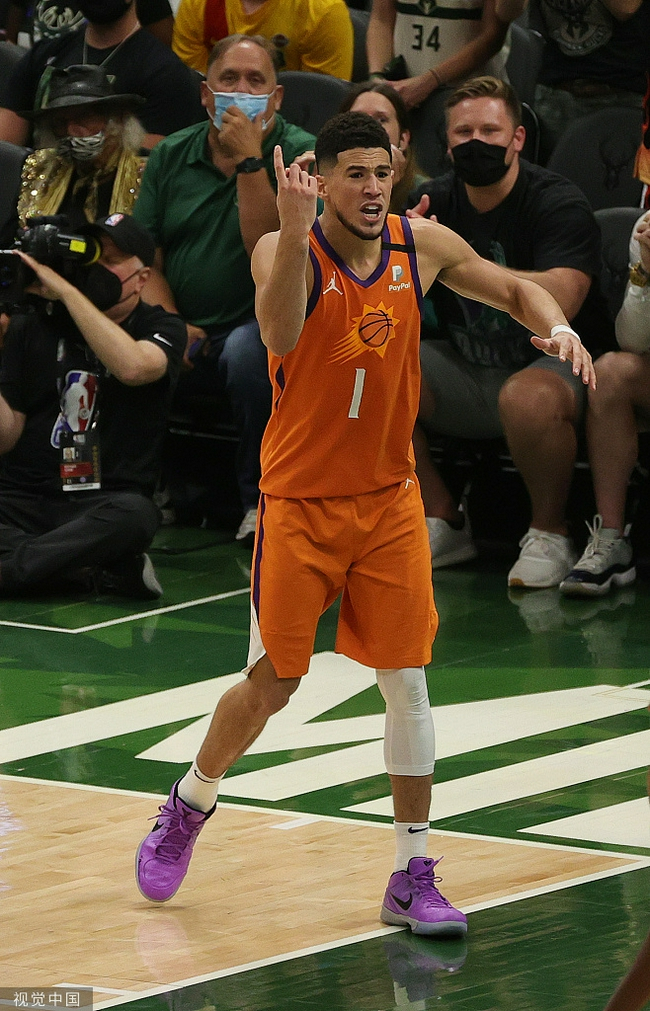 布克本场28投17中,三分3投0中,罚球9罚8中,得到42分1篮板2助攻。