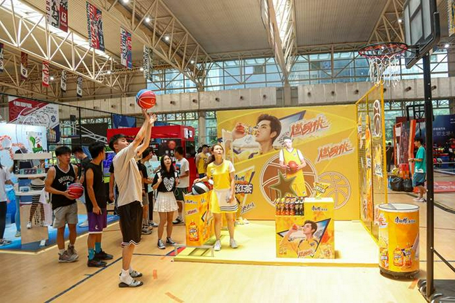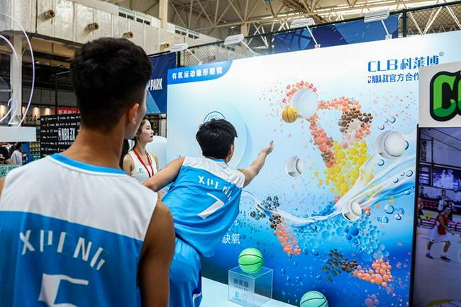 现场除了精彩的篮球赛事之外,还有互动展台游戏供球迷参与。
