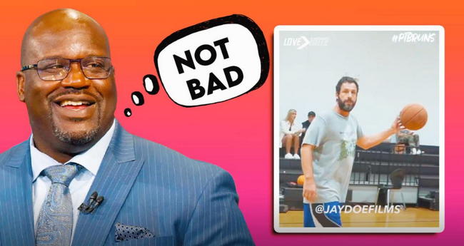 北京时间9月3日,影星亚当-桑德勒近日跟NBA球星一起打球,沙奎尔-奥尼尔搞笑评论。