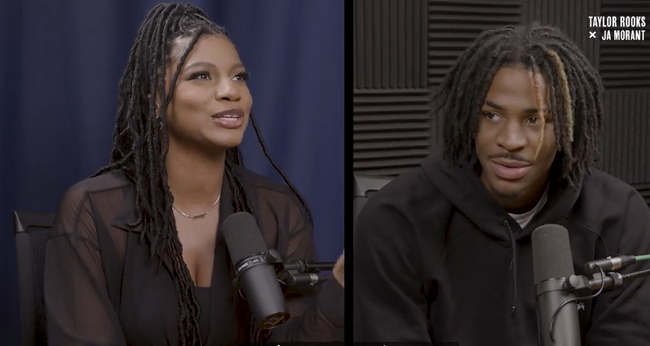 莫兰特接受美女记者泰勒-鲁克斯专访,谈到扣篮大赛问题。