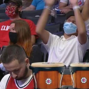 北京时间10月7日,洛杉矶快船队主场98比113不敌国王,在这场季前赛对决中,镜头扫到看台上一位球迷,引起了很多网友的注意。