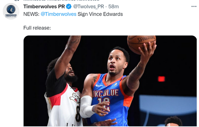 北京时间10月16日,明尼苏达森林狼官方宣布签下了前锋文森特-爱德华兹,目前,合同细节还没有公布。