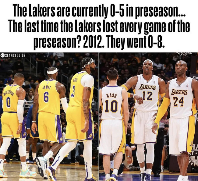 那个赛季的湖人在休赛期交易得到了史蒂夫-纳什以及德怀特-霍华德,再加上队内的科比-布莱恩特和保罗-加索尔,从而组成了梦幻般的四巨头。但是他们却在季前赛8场皆败,让无数人大呼看不懂。