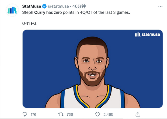 可是过去的三场比赛,库里均遭遇到了末节危机。对阵国王/雷霆/灰熊的三场第四节和加时赛,他合计11投0中,一分未得。今天和灰熊的比赛,勇士一次次将取胜的球交给库里,可库里再也没有像对阵快船的第四节一样,命中过一记关键三分,让年轻的莫兰特率领灰熊,继上赛季附加赛后,再一次在大通中心加时取胜。