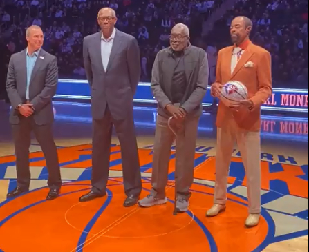 北京时间11月2日,尼克斯主场迎战猛龙,他们在赛前介绍了四位进入“75杰”的NBA名宿。