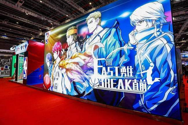 NBA在该区域展示了由NBA中国出品的动漫作品《勇往直前》,一部专为NBA Z时代粉丝创作的篮球动漫,集结了校园励志、热血篮球、运动潮流等多重元素,以篮球为主线彰显了校园生活中NBA比赛蕴含的正能量、团队精神以及对梦想不懈追求的精神。