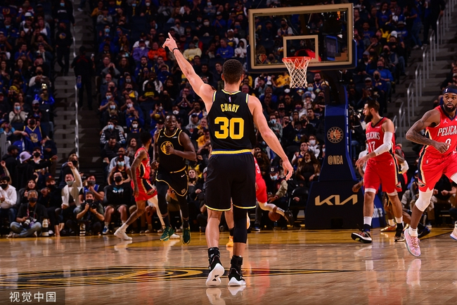 库里今天很轻松就追平了纪录。第三节中段,鹈鹕的约什-哈特强突后起跳投篮,库里从身后跟上,用左手结结实实地将球盖掉。
