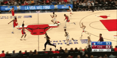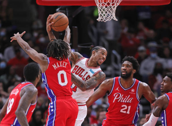 在比赛中,双方打得难解难分,在双方第三节结束的时候,公牛以77-84 落后于76 人。不过,到了第四节一开始阶段,德罗赞投进了一记3+1,表现十分惊艳。