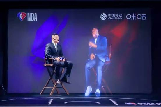 11月8日,“中国移动咪咕进博会篮球嘉年华”在中国国际进口博览会的NBA展台举行。中国移动咪咕通过5G技术和一系列观赛黑科技,围绕着当天快船对阵黄蜂的精彩比赛,为球迷打造了丰富的全场景沉浸式观赛体验,让球迷大呼过瘾。此外,中国移动咪咕更通过5G和全息投影技术,将湖人名宿、五届NBA总冠军魔术师约翰逊“请到”活动现场,与主持人进行了一场跨越时空的对话,畅谈科技与体育的联姻。