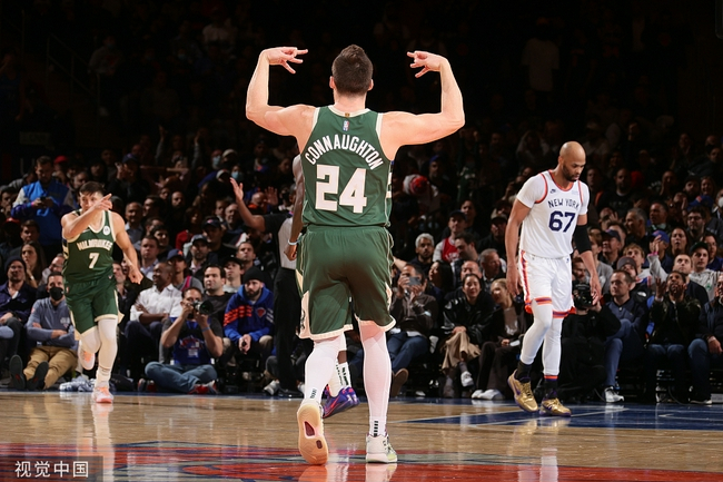 雄鹿饱受伤病困扰,克里斯-米德尔顿和布鲁克-洛佩斯等人还未能复出。在这种情况下,仍有如此出色的表现,令人意外。(吴哥)
