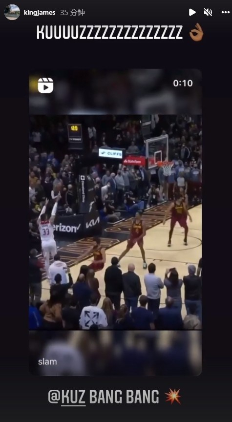 詹姆斯也更新社交媒体动态为前队友打CALL,詹姆斯晒出了库兹马投进关键三分的视频,并写到:“KUUUUZZZZZZZZZ@库兹马”。