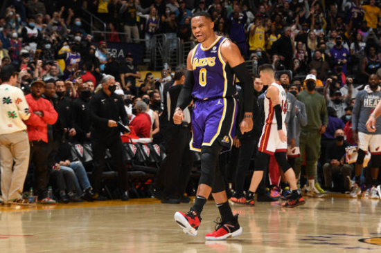 北京时间11月11日,洛杉矶湖人以120-117险胜迈阿密热火,拉塞尔-威斯布鲁克22投10中,其中,他的3分球7中3砍下25分12篮板14助攻的三双。不过,尽管威少本场比赛在数据上发挥不错,美媒仍然列出了一项糟糕的数据。