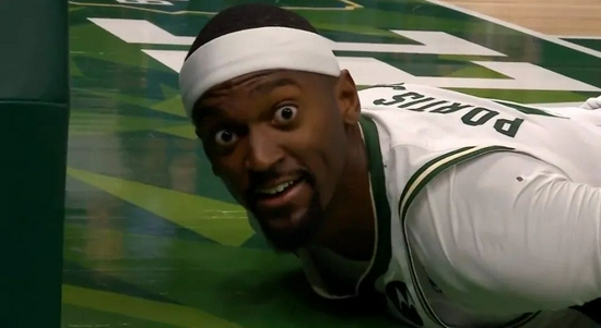 上赛季季后赛,与篮网系列赛的最后几场波蒂斯被弃用。但在之后与老鹰的系列赛天王山之战,字母哥伤停,波蒂斯临危受命首发出战。