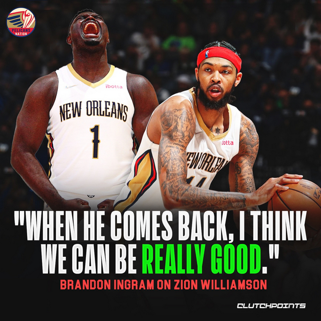 北京时间12月4日,据美国媒体报道,锡安-威廉姆森因为脚伤又一次推出了复出时间,队友布兰登-英格拉姆近日接受采访时谈到了有关锡安的事情。