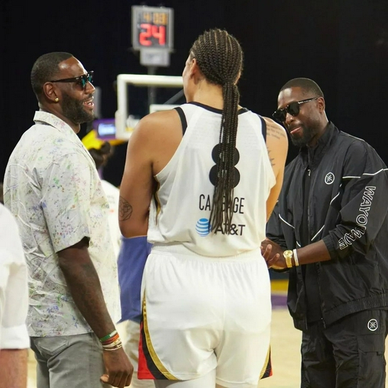 詹姆斯在她身边显得小鸟依人,韦德看着她更是一脸羡慕。