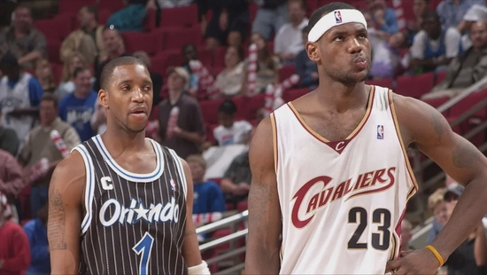 2003年是勒布朗-詹姆斯开启传奇生涯的起点,而顶着无数光环的小皇帝也迎来了自己的第一次年终大战,联盟适时的安排了当时的联盟新贵特雷西-麦克格雷迪与他对位,恰恰他也是詹姆斯的儿时偶像。