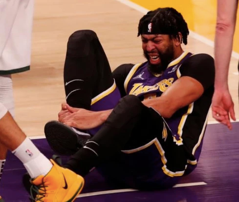 在昨天的比赛中,浓眉哥在第二节不小心踩到了戈贝尔的后脚跟,结果,直接90度崴脚,他无法行走,被小乔丹和魔兽搀扶离场。