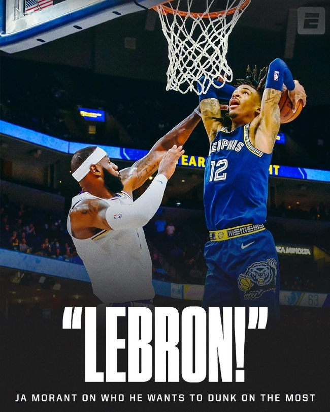 北京时间3月23日,据美媒体报道,灰熊新星贾-莫兰特在接受采访时谈到了自己最想隔扣的人,他给出了明确的答案“勒布朗-詹姆斯”。