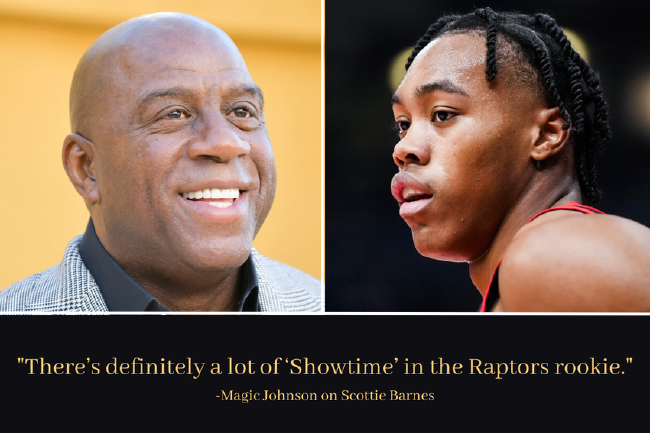 北京时间4月23日,能得到前辈巨星的褒奖,对于NBA菜鸟们而言是无上的荣耀,而本季新人王热门候选、猛龙新秀斯科蒂-巴恩斯就享受到了这份荣耀。据《多伦多星报》报道,魔术师近日盛赞巴恩斯,称后辈身上有Showtime时代的影子,球风和他很相似。