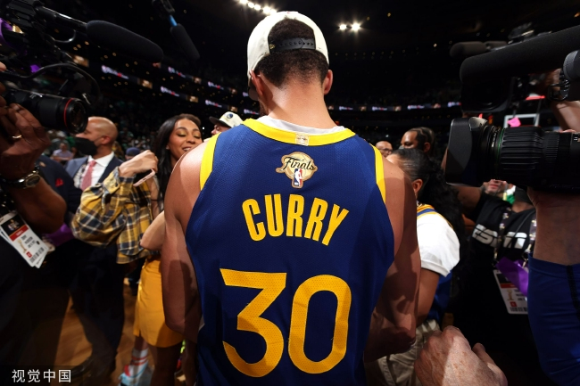 北京时间6月21日,勇士夺冠游行,一位球迷带了一只山羊来到游行现场,并且该山羊身上穿着库里的球衣。