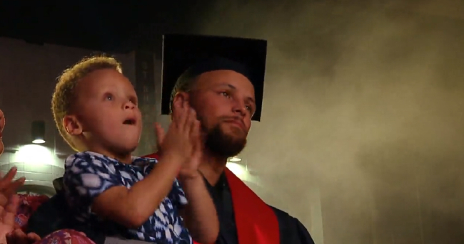 库里在今年终于完成了自己的大学学业,获得了学士学位,此前由于毕业典礼与总决赛冲突,因此库里直到现在才领取了自己的学士学位。