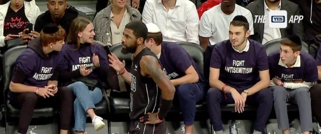 一些人士专门买了篮网的前排座位,并身穿“与反犹太主义做斗争”的T恤,向欧文表达抗议。