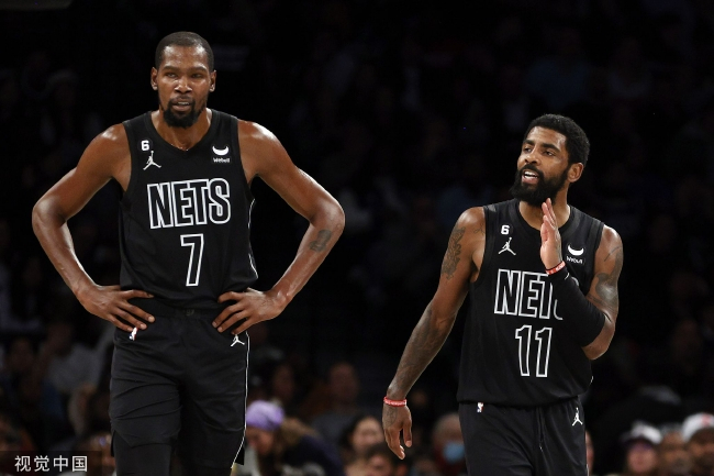 谈及欧文被禁赛,杜兰特表示:“这很不幸,这对周围的每个人来说都很糟糕。希望我们能够度过这个难关。”