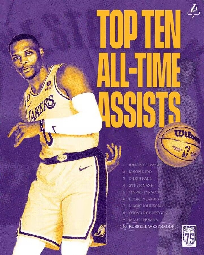 北京时间1月31日,NBA常规赛,湖人客场挑战篮网。湖人球星拉塞尔-威斯布鲁克在今日的比赛中跨过里程碑,进入NBA历史助攻榜前十。