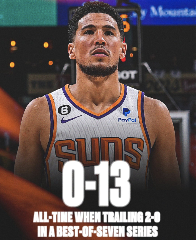 数据统计显示,当太阳队在七局四胜制的系列赛中,处于0比2落后时,他们的系列赛战绩为0胜13负。