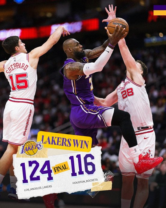 在2026年3月湖人双杀火箭的焦点战中,41岁的勒布朗·詹姆斯以14投13中的恐怖效率轰下30分,而卢卡·东契奇则以40分9篮板10助攻的准三双统治末节,这对年龄相差16岁的组合用一场“高效+全能”的极致表演,诠释了何为历史级双核的统治力。
