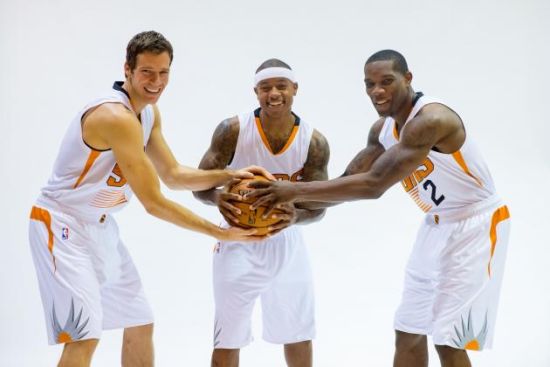 这个赛季的看点,目前来说,就是三后卫,不过让人担忧的也是这一点,德拉季奇和布莱德索在场上的角色分配以及更衣室内的化学作用,决定着球队的活力和和谐度。以赛亚托马斯这个夏天来到太阳,融入球队非常的迅速,季前赛表现也很好,也许是赛季最佳第六人的有力竞争者。而目前比较薄弱的内线是否能与其他球队对抗,则要看我们去年的新秀Alex Len能否迅速成长。双胞胎的作用在球队也不小,特别是马基夫。