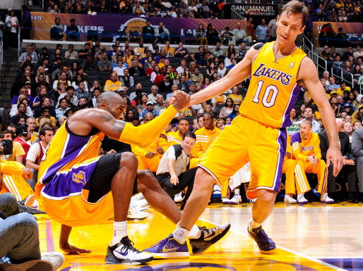 同为太平洋赛区,湖人绝对是我现场见过最多的球队(也许并列还有马刺)。曾经见过06-07季后赛第一轮被太阳淘汰的湖人,科比在更衣室不爽的样子(更难忘的是还在哼小调的Smush Park)。而2009-2010西部决赛后春风得意的科比也仿佛还在眼前(当然更催泪的是新闻发布会上悲伤的纳什和两个小公主)。