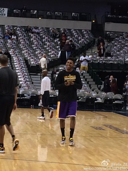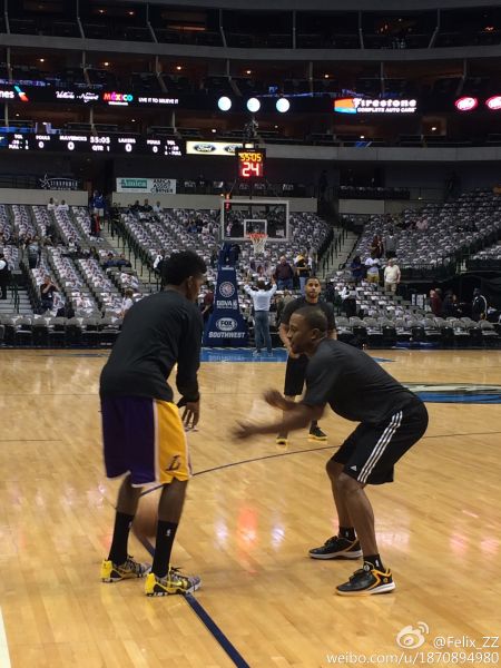赛前热身每个人都会练习自己最擅长或者是在比赛中用得到的招数,比如萨克雷[微博]在做着地位脚步,乔丹克拉克森在练习三分内一步跳投。而尼克扬则在练习迎着防守队员着干拔三分投篮!看来“单打王”果真不是徒有虚名。在连续命中几个干拔三分之后,尼克扬心满意足地在球迷的呼喊声中进了更衣室。可是事与愿违,在今天的比赛中,尼克扬七投两中仅得五分,湖人队也已34分惨败给小牛队。