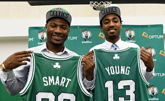 更令绿军球迷高兴的是两个新秀“年轻”和“聪明”最近发挥十分稳定。斯玛特屡屡首发,成为敦实的防守重兵,三分球也逐渐稳定了起来。赛季初鲜有出场机会的杨随着球队进攻点的缺少也获得了稳定的上场时间,一次次标志性的左手三分总是能点燃现场的气氛,吹响反击的号角。而今天比赛里出现了这一幕:斯玛特断球快攻不看人传球传给跟进的杨,“年轻”一个暴扣结束进攻。十年后回想这一幕,这或许就是两个球星“基情”的开始。