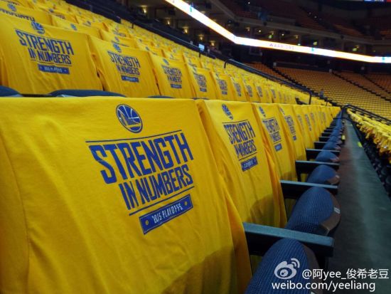 新浪体育讯,北京时间05月22日(奥克兰当地时间05月21日),美国太平洋时间下午三点半,距离NBA 2014-15赛季西部决赛第二场正式开打还有将近3个小时的时间。勇士队主场甲骨文球馆已经准备就绪,黄色的季后赛主题衫上印着“STRENGTH IN NUMBERS”整齐划一的铺在了每一个座位上,把球馆化成了一片黄色的海洋。勇士的两大新人,库兹米奇和麦卡杜正在球场上练着投篮,他们也许都知道在西区决赛的舞台上他们可能很难有登场的机会,但他们依然努力的练着,专注而刻苦。