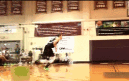 当然,还有著名的罚球线起跳大风车扣篮,很难想象一个大一新生就能完成这样匪夷所思的动作。