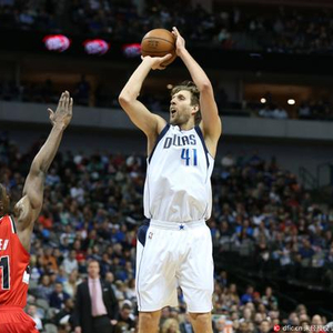 诺维茨基手感火热,成为近50年来,第四位在37岁高龄还能砍下40分的球员,此前三位是迈克尔-乔丹、“天钩”贾巴尔和卡尔-马龙。