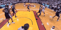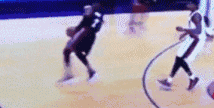 第二节比赛还剩8分钟,詹姆斯在快攻中及时切入,接到队友传球后完成了一记双手暴扣,但慢镜头显示,詹姆斯在这次上篮中出现了走步违例。