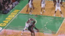 对阵凯尔特人时,詹姆斯在篮下背身单吃皮尔斯时出现了中轴脚变换的动作,但裁判并没有吹罚。