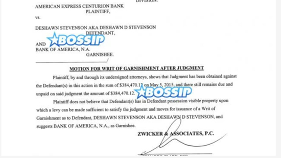 即使这样,这些钱也不足以来支付德肖恩昂贵的支出。根据美国Bossip网站提供的信息,2013年曾在老鹰队效力的德肖恩·史蒂文森现在已经陷入与美国运通银行的经济纠纷。因为曾今的一时富有,德肖恩拥有一张大众梦寐以求的美国运通黑卡,但是他从未支付过他的账单以至于如今欠下高达约240万人民币的债务。
