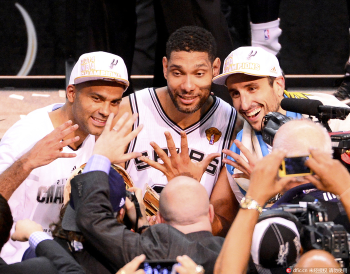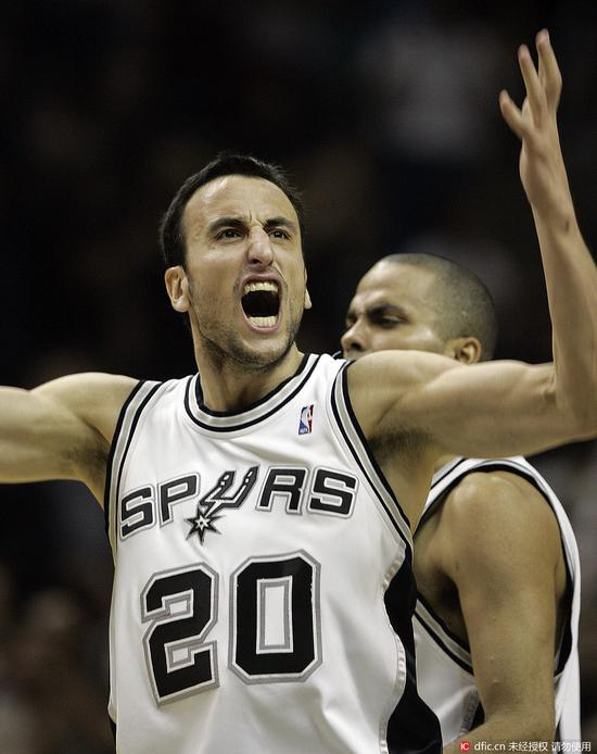在所有马刺球迷心中,都绝对有一个属于吉诺比利的瞬间,那就是他那年总决赛中,两根手指比在耳后,聆听现场呼声的镜头。
