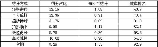 巴特勒有超过三分之一的分数是利用中距离得到的,让他处在距离篮筐16英尺的地方,对他来说是最佳的得分位置。