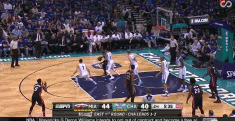 他也可以利用底线的挡拆掩护切入到篮下。