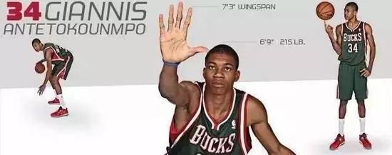 2013年初球探注意到字母哥时,他的身高只有2米,但在2013年选秀大会时他长到了2米05,而现在已经长到了2米11,几乎就是一个缩减版的人类演化过程。
