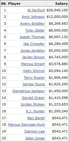 凯尔特人现在处于上升期,他们的实力不错,赢球已经成为习惯。本赛季凯尔特人的实力没有下降,反而稍有提升。但是需要注意的是,他们阵中的薪金水平并不科学。球队的当家明星伊塞亚-托马斯年薪只有660万美元,这意味着艾尔-霍福德比托马斯一年多挣2000万,阿米尔-约翰逊是托马斯年薪的两倍,艾弗里-布拉德利和泽勒的薪水都比小刺客高。小刺客对此能服气吗?顺便说一下,贾伊-克劳德的薪水比小刺客还低。