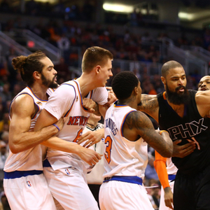 吐槽不停,欢乐不止,新浪NBA神吐槽栏目继续登场!今天在尼克斯与太阳队的比赛中,太阳队的新秀克里斯抱摔波神,詹宁斯放下球上前保护波神,网友吐槽:控球的那个是谁?路转粉!