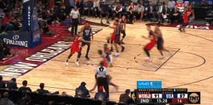 北京时间2月18日消息,今天,NBA全明星周末正式启动,NBA新秀赛在今天开战,最终,国际队以150-141击败了美国队,美国队后卫德文-布克出战25分钟,15投7中拿下17分6助攻。
