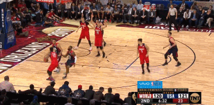 当然,穆雷在下半场才迎来真正的表演,他狂砍下27分,尤其在美国队逐渐迫近比分时,是他接连飙中3分,在4分钟内连得13分,生生阻断了对手反扑的势头。投得兴起,穆雷也逐渐成为全场焦点,球迷忘情为其欢呼,其他新星也乐于为他做球。终场前,穆雷还上演了底线飞身救球,妙传篮下另一侧无人看守的掘金队友尼古拉-约基奇爆扣的好戏。