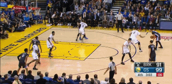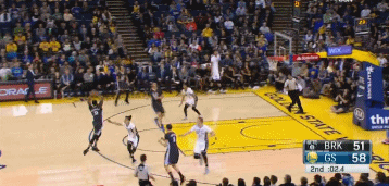 第二节,库里的得分势头有所减弱,但是在本节最后还剩3秒,库里在左侧45度三分线外接到伊戈达拉的传球后直接出手命中,而且造成篮网的防守犯规。上一场勇士与快船的第三节最后阶段,库里几乎在同样的位置打成3+1。
