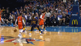 第四节打到还剩8分07秒时,在场下短暂休息的威少重新披挂上阵,表演时刻正式开始:他首先在右翼接到格兰特传球,完成了一记后仰跳投,之后又在左侧45度角以及弧顶位置接连飙中两记三分,瞬间将比分拉开到105-95。